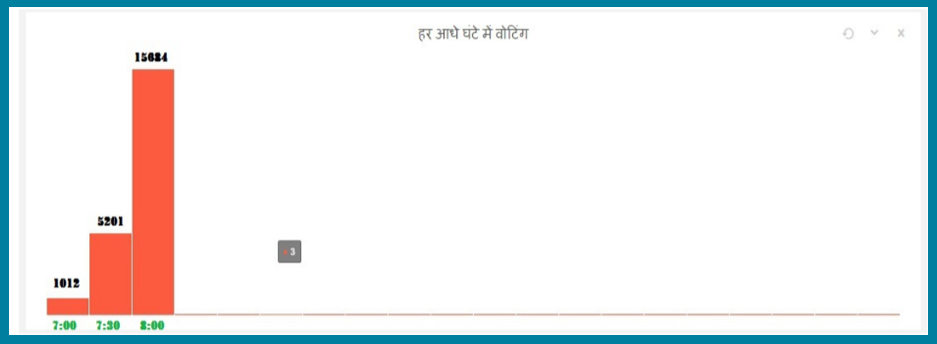 Ranneti Pooling Day Dashboard Graph Shows number of voters voted in every 30 minutes .